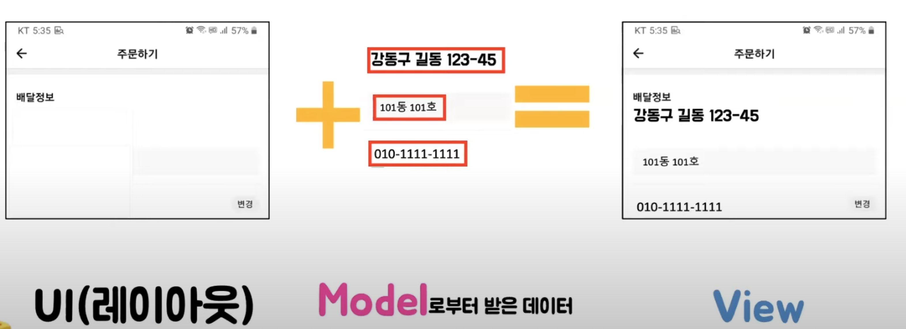배달의민족을 예로 들어보면 사용자마다 정보를 다르게 보여줘야한다 이럴 경우 Model로부터 받은 데이터를 사용하지만