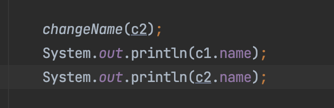 이렇게 changeName을 호출하는데 그 값으로 c2를 넣은 다음