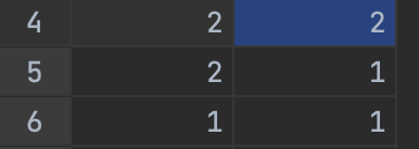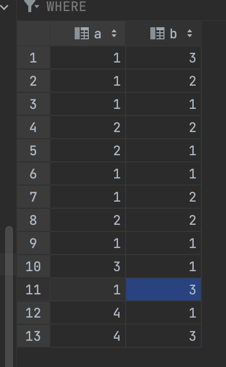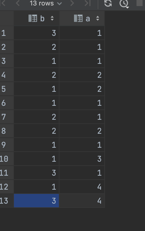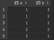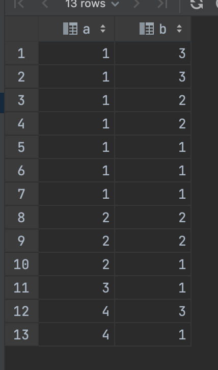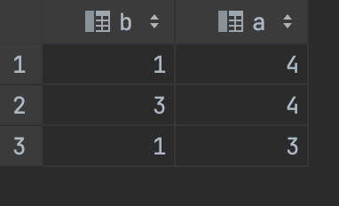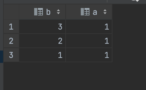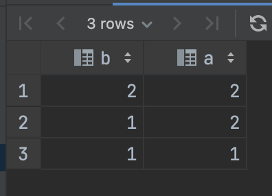 열이 2개라서 2개가 보이지만 현재는 정렬만 한 것이니까 a 컬럼에 집중해서 보자