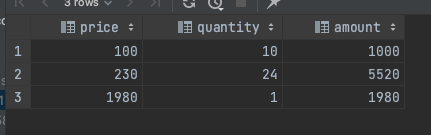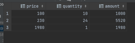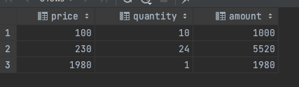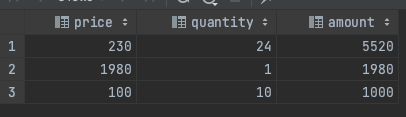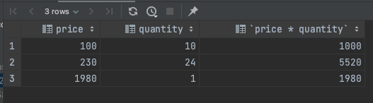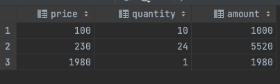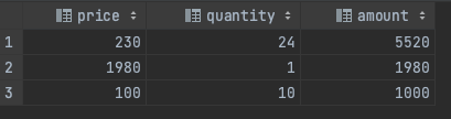 따라서 금액을 계산하는 식은 price*quantity가 되며 SELECT 구로 지정해서 계산할 수 있다.