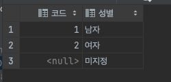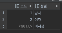 조건식을 보면 1이면 남자 2는 여자 그외에는 미지정으로 되도록 해줬기 때문에 정상적으로 결과가 나왔다.