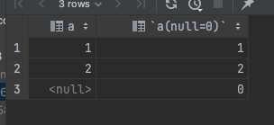 그 결과로 1과 2는 그대로 1과 2를 뱉어냈지만 NULL값 같은 경우는 조건식이 '참'이 되어 0이라는 값을 뱉어낸다.