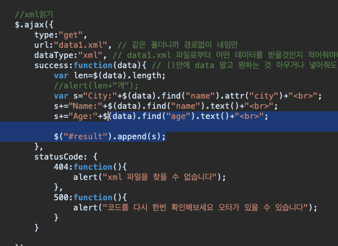 $(data).find("stu").each(function(idx,ele){ 라는 코드를 이용해서