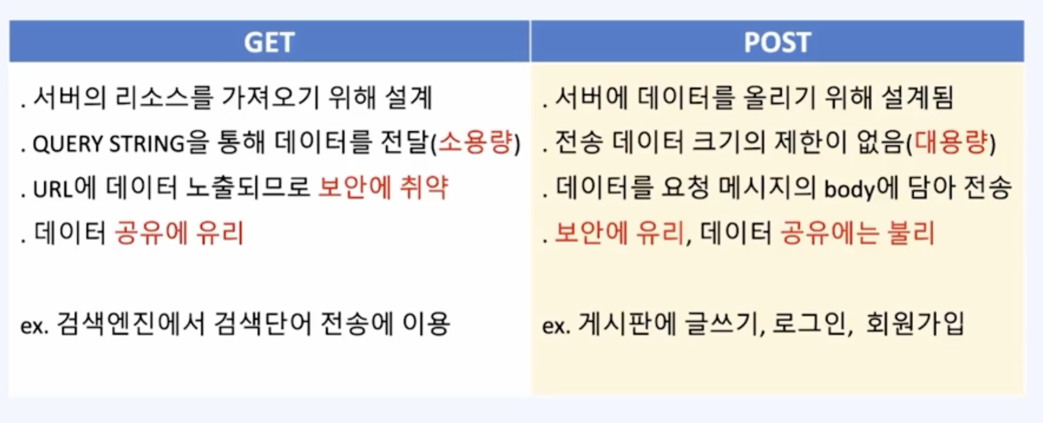요청 메서드에서 대표적으로 GET , POST 2개가 있다