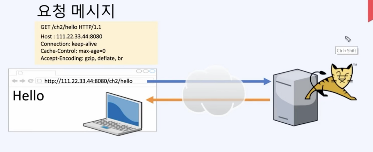 그러면 서버는 그 응답을 받아서 응답메세지를 만들어서 클라이언트에 주게되고