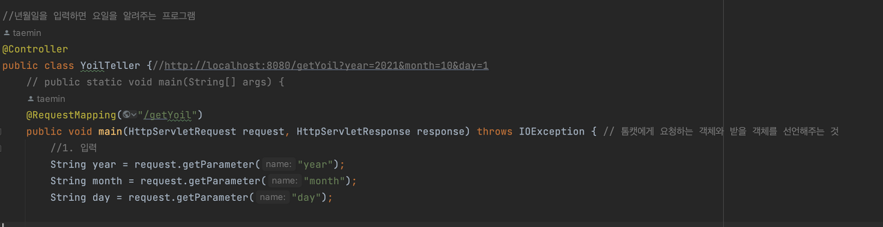 해당 프로그램을 짰던 코드를 열어보면 year month day를 입력하도록 했지만