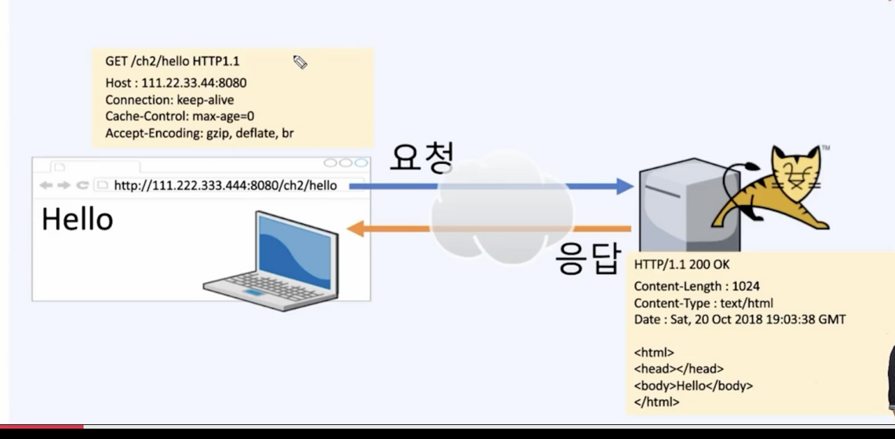 그러면 서버는 그 응답을 받아서 응답메세지를 만들어서 클라이언트에 주게되고