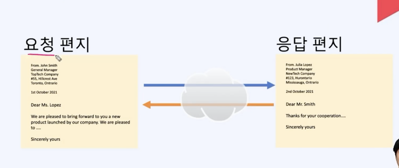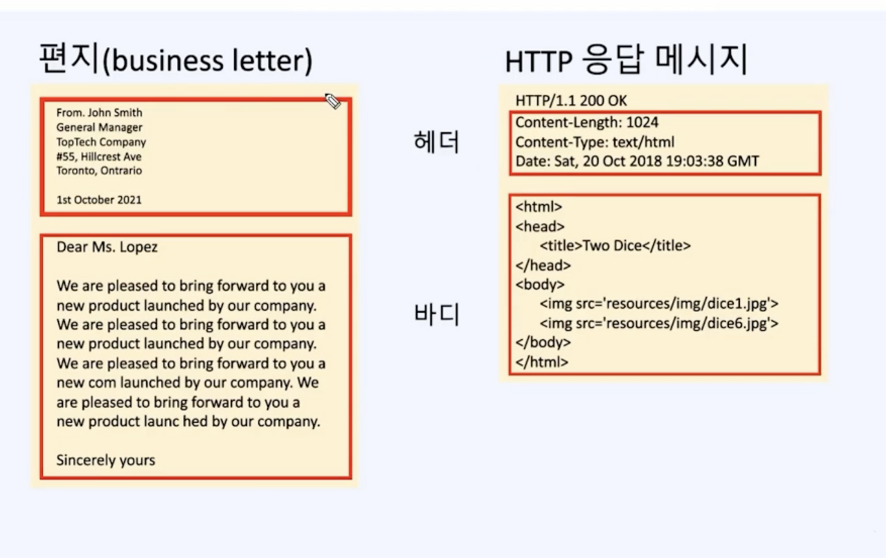 편지에서도 헤더가 있고 본문내용 바디가 있다