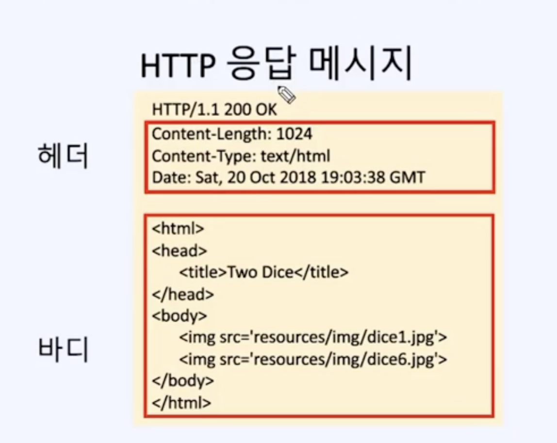 HTTP응답 메세지에도 설명인 헤더가 있고 본 내용인 바디가 있다
