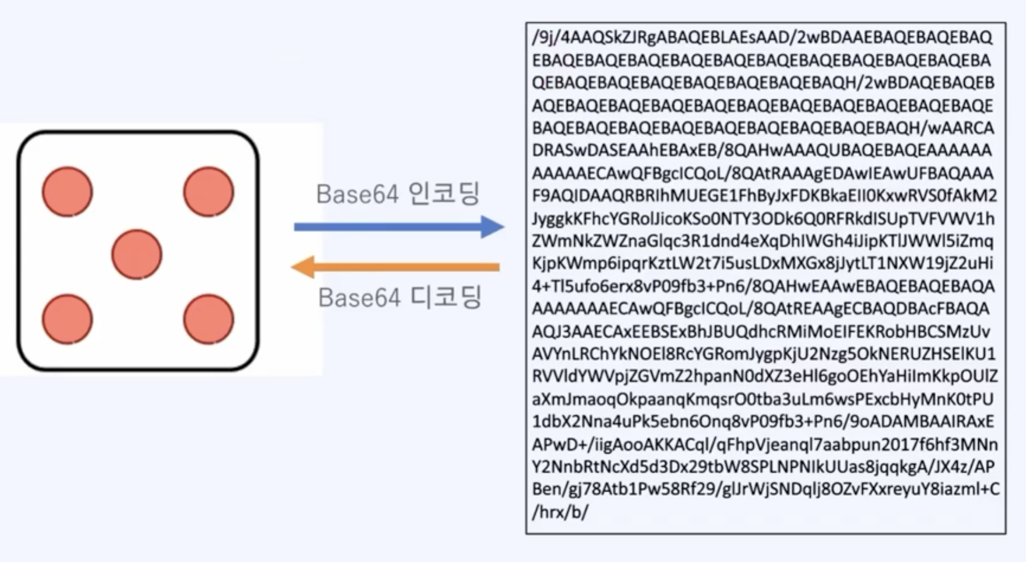 두번째로는 Base64를 써서 바이너리 데이터를 텍스트데이터로 변경해서 보내는 방법이 있다