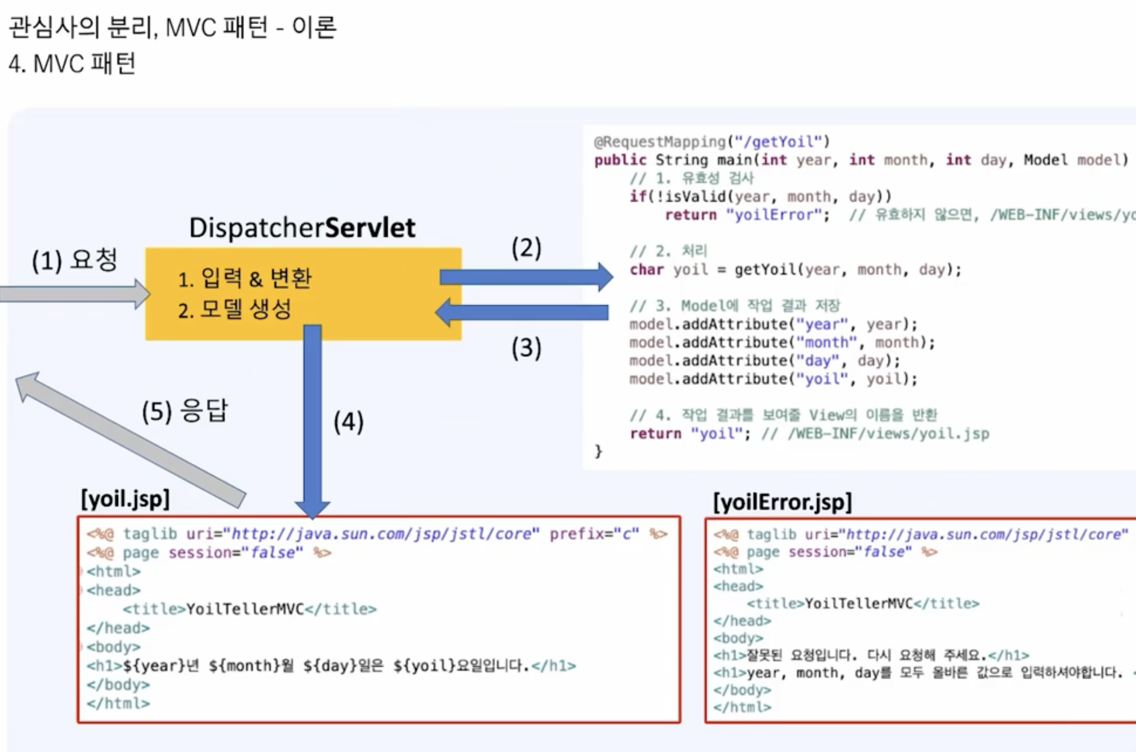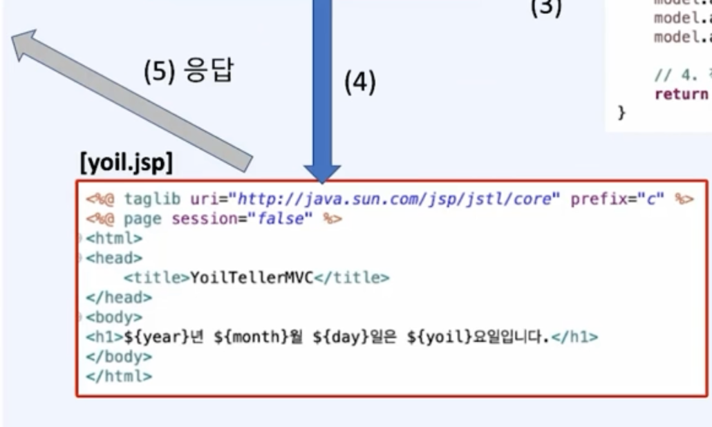 야! 이 값들 yoil.jsp에서 출력해! 라고 주문하게 된다