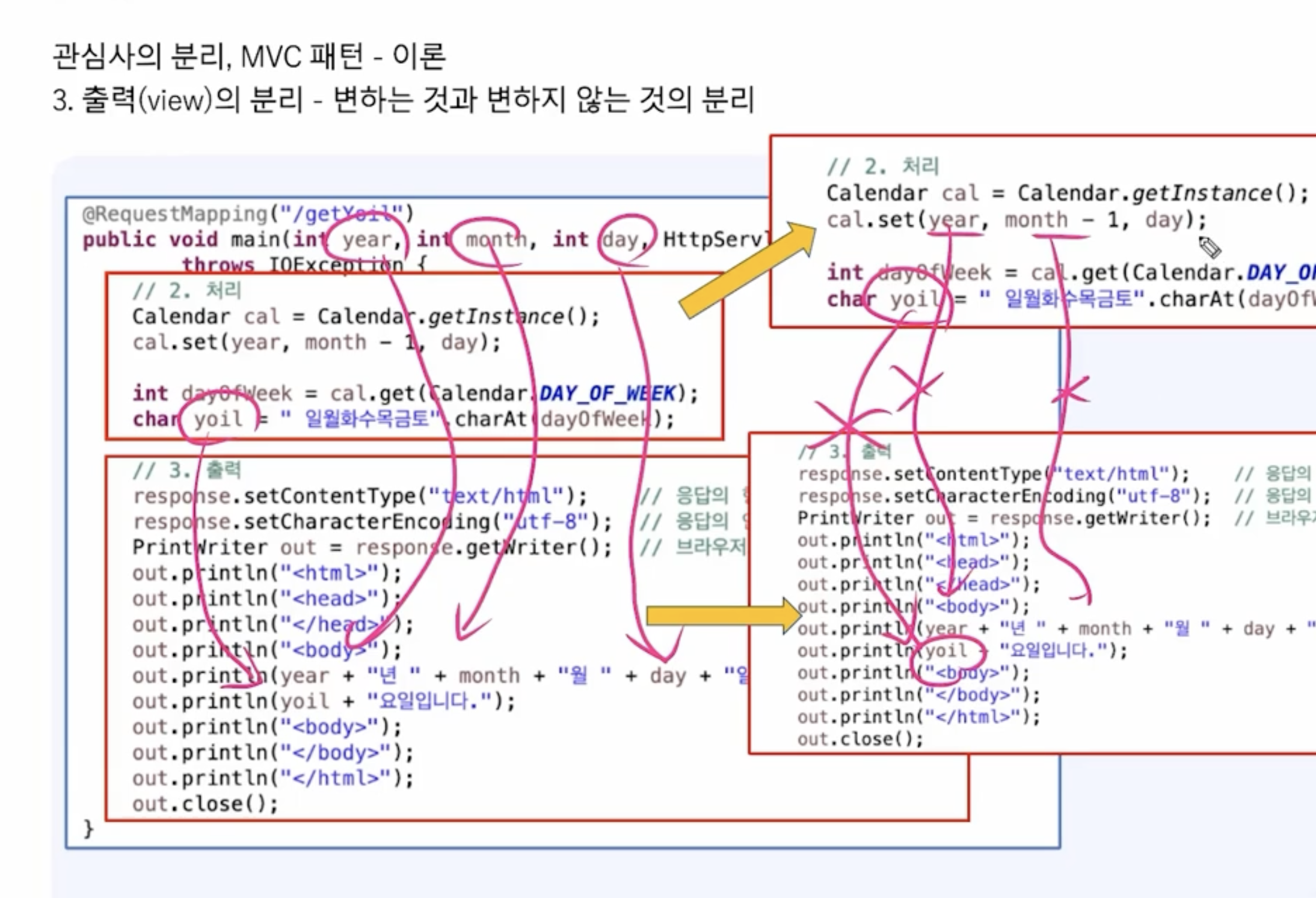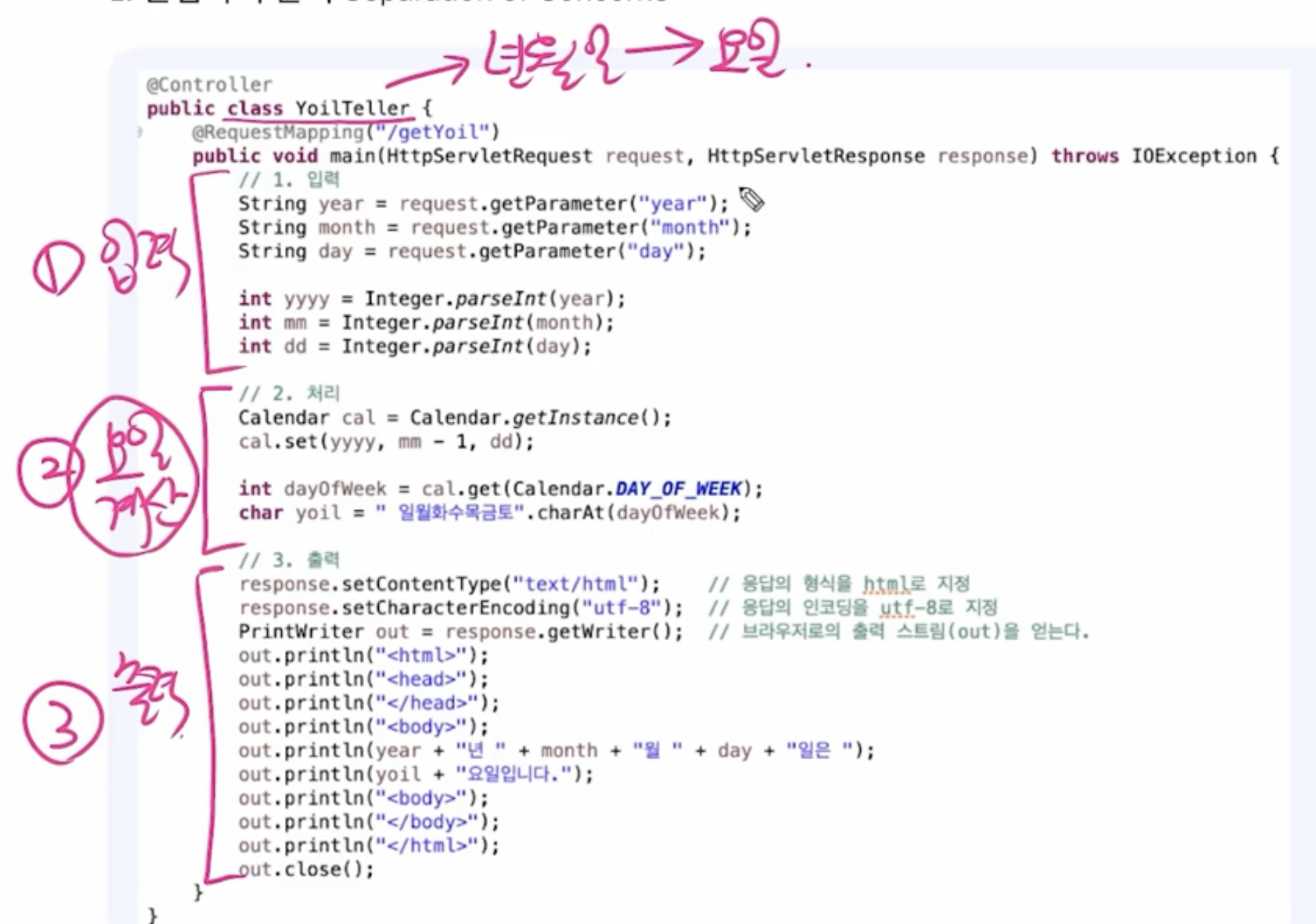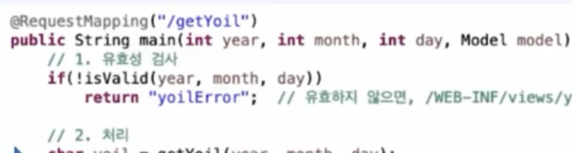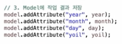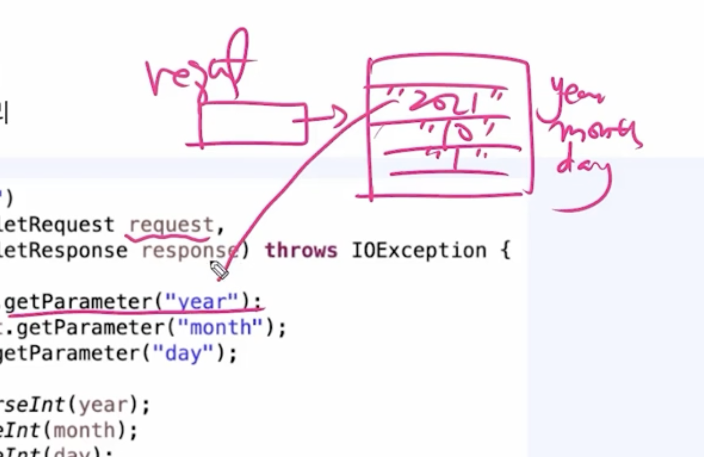 매개변수로 request를 받아와서 년원일을 getParameter로 꺼내서 썼는데