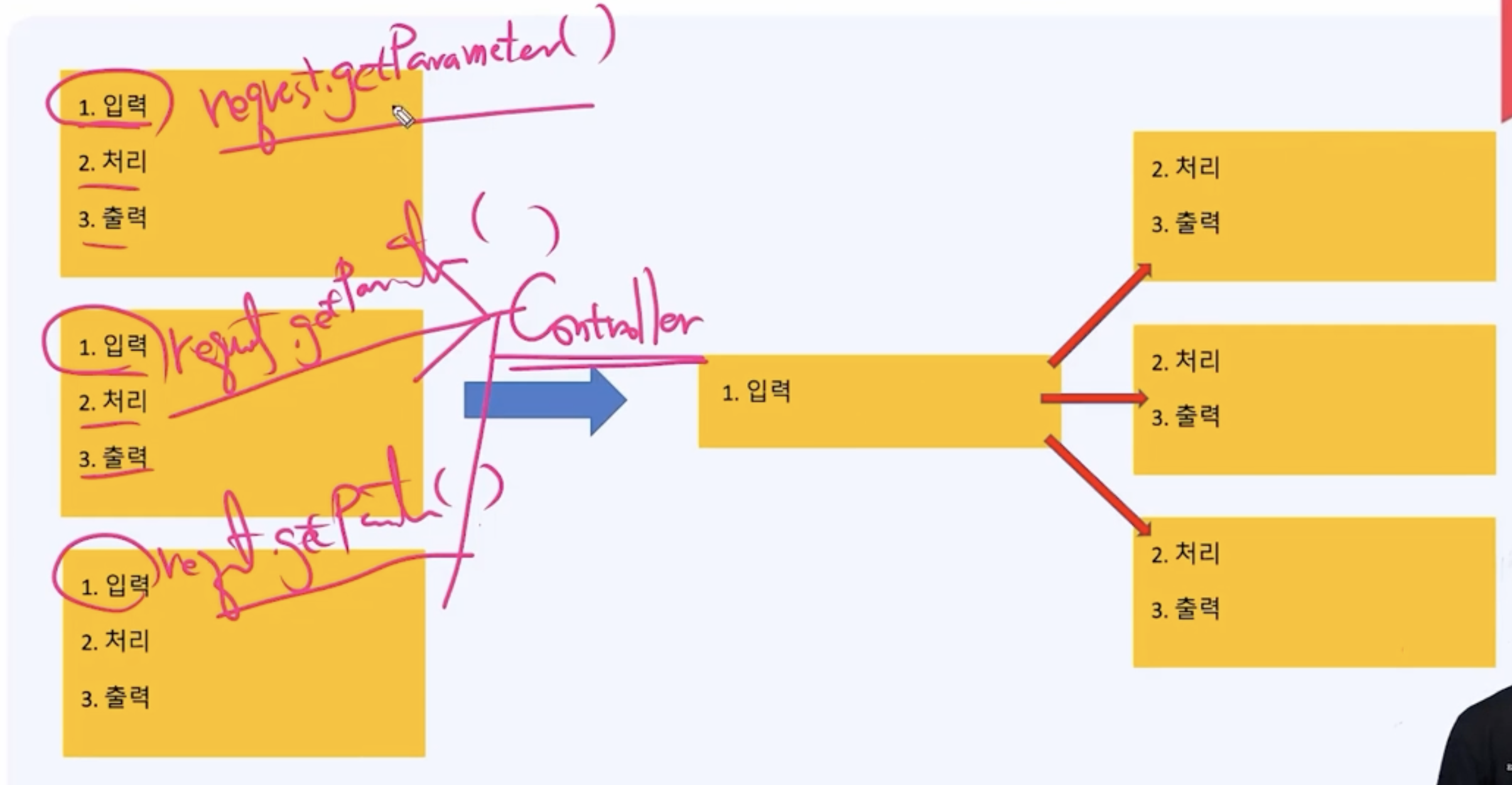 요청이 들어오면 먼저 입력을 받고 각각의 컨트롤러로 보내주면되는 것