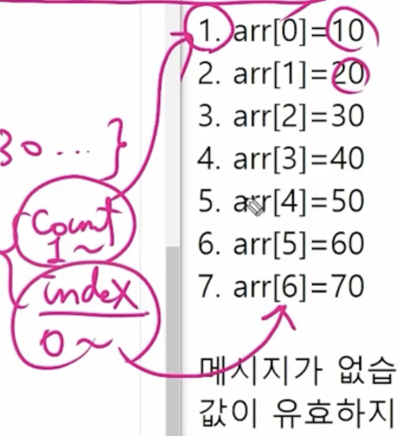 count는 1부터 ~ index는 0부터 ~ 출력되어지는데