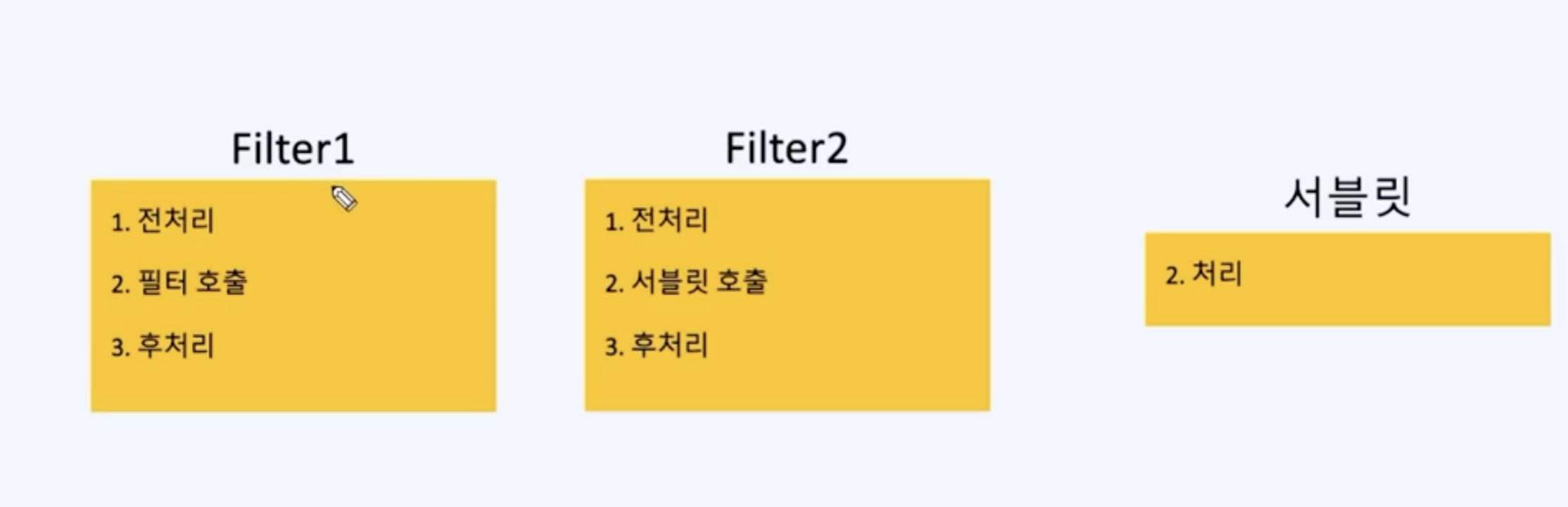 필터를 사용하면 해당하는 서블릿을 호출만 하면 되는 것이다