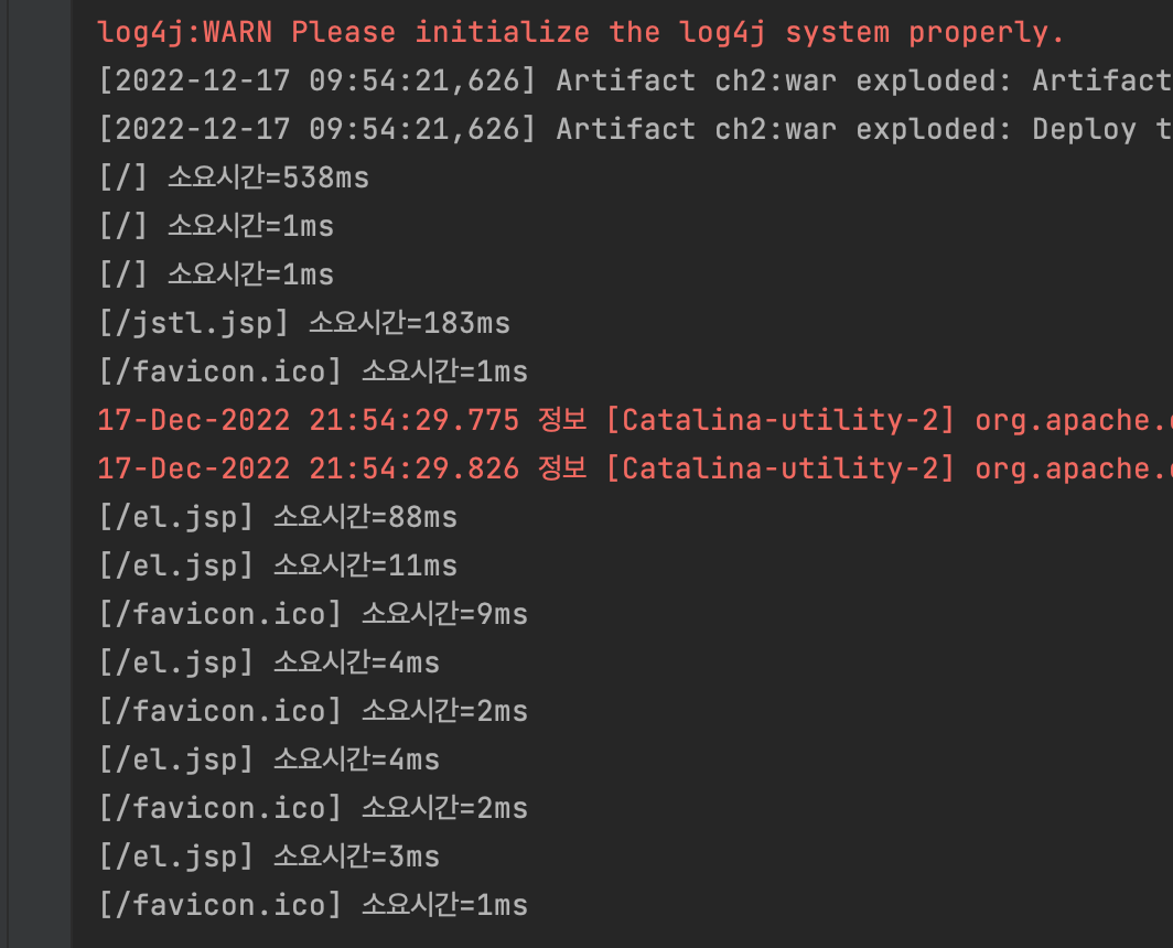 제일먼저 톰캣이 실행되면서 최초의 로딩시간 538ms가 나오고