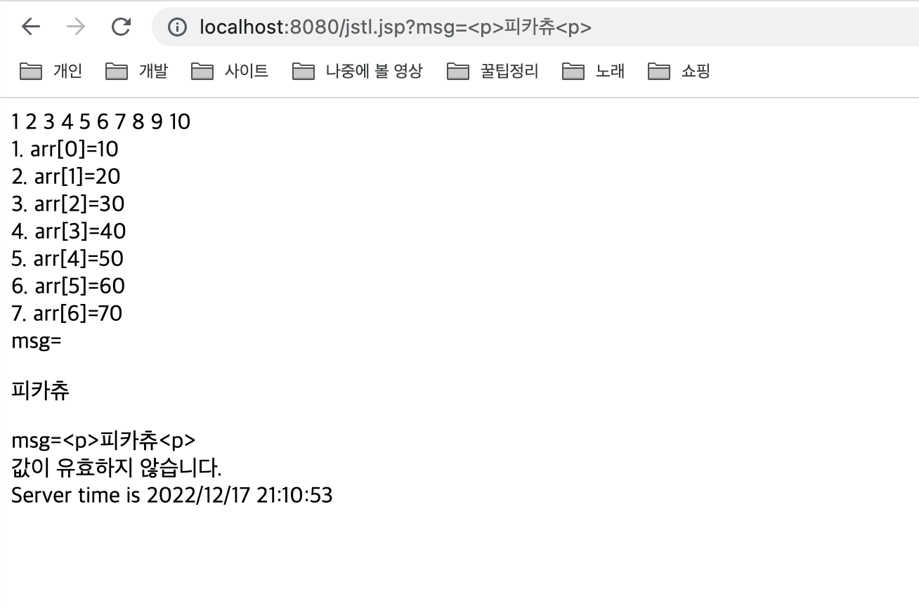 서버를 껏다 켠 후 기존의 jstl파일에 피카츄라고 적었던 주소를 입력하고 엔터를 쳐보면