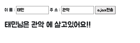 이름과 주소를 보내서 백에서 받아서 프론트로 보내서 div 석세스로출력