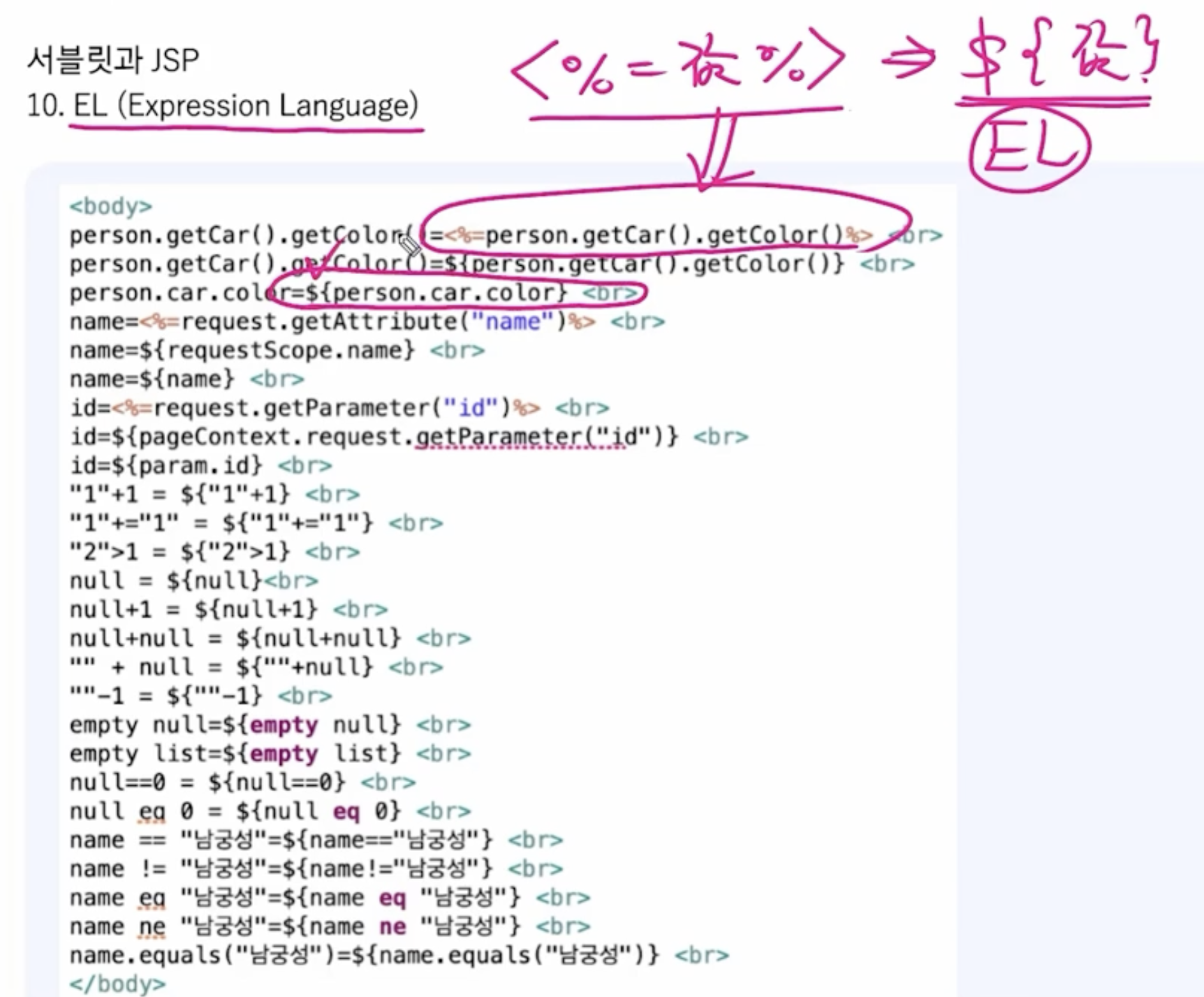 <% = 값 % > 으로 쓰던 것을 ${값}으로 간단하게 작성 할 수 있다